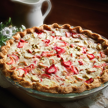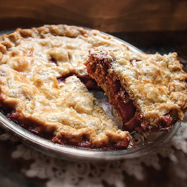 J'aime beaucoup faire des treillis de pâte pour apposer sur le dessus de cette tarte. La belle couleur des fruits nous donne l'eau à la bouche... juste à les regarder! Je vous avoue que j'ai vraiment un faible pour les tartes aux fruits qui contiennent des cerises... et nous avons la chance d'avoir un producteur d'excellentes cerises griottes à proximité alors j'en ai toujours en réserve.